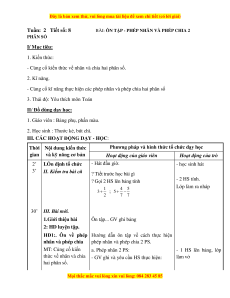 Tuần: 2 Tiết số: 8 BÀI: ÔN TẬP - PHÉP NHÂN VÀ PHÉP CHIA 2