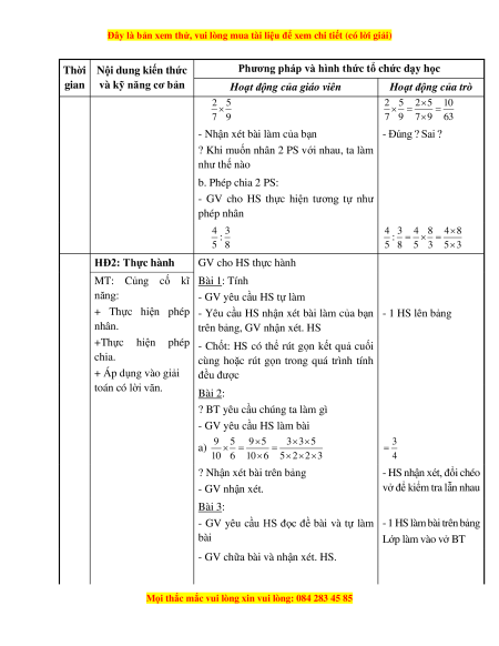 - GV cho HS thực hiện tương tự như phép nhân 4 3 4 3 4 8 4 8 : : = = 5 8 5 8 5 3 5 3 HĐ2: Thực hành GV cho HS thực hành