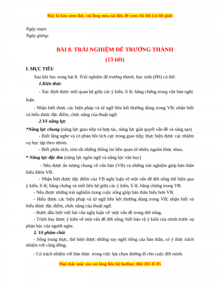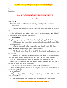 BÀI 8. TRẢI NGHIỆM ĐỂ TRƯỞNG THÀNH (13 tiết) I. MỤC TIÊU