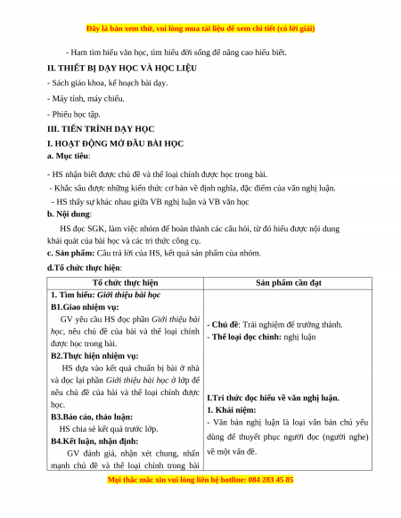 - HS thấy sự khác nhau giữa VB nghị luận và VB văn học b. Nội dung: