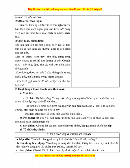 I. TRẢI NGHIỆM CÙNG VĂN BẢN