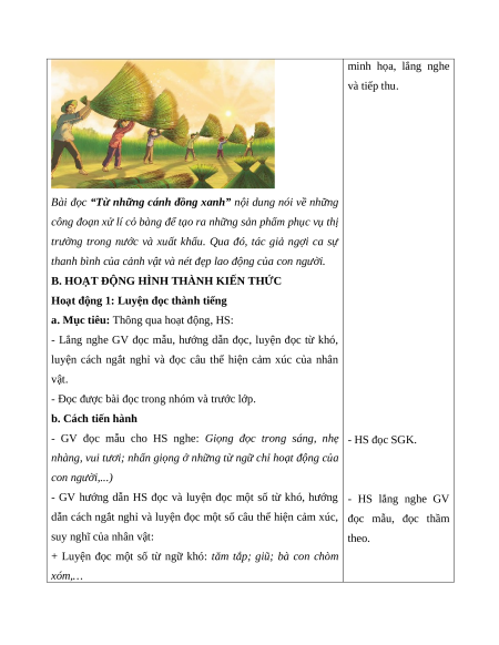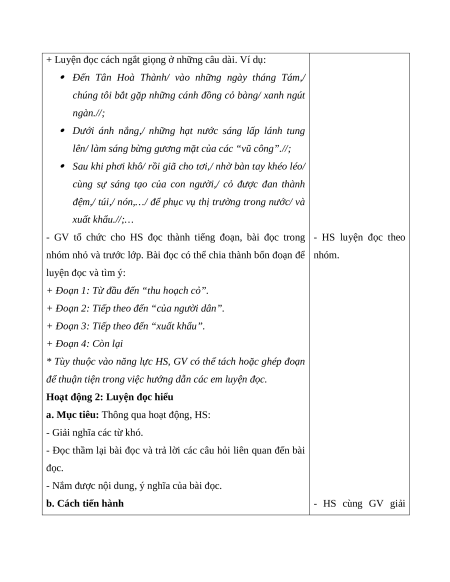 - Đọc được bài đọc trong nhóm và trước lớp. b. Cách tiến hành