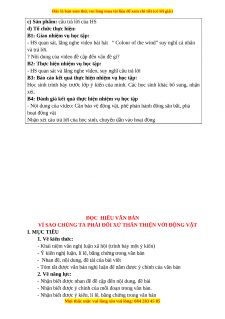 VÌ SAO CHÚNG TA PHẢI ĐỐI XỬ THÂN THIỆN VỚI ĐỘNG VẬT I. MỤC TIÊU 1. Về kiến thức: