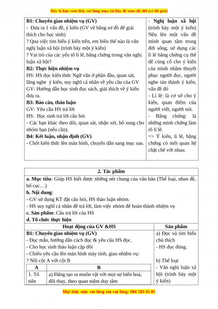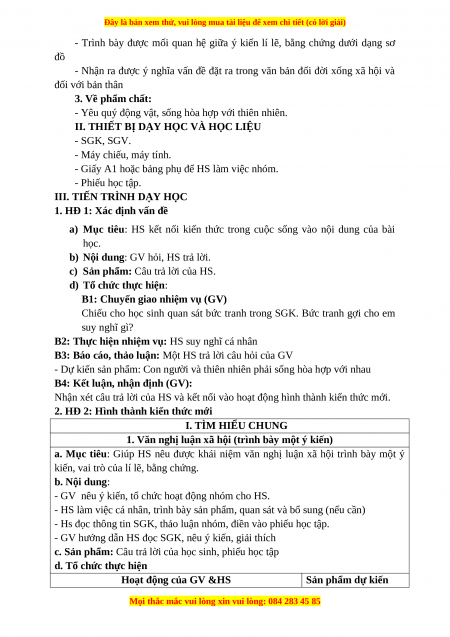 (NGHỊ LUẬN XÃ HỘI) I. MỤC TIÊU 1. Về kiến thức: