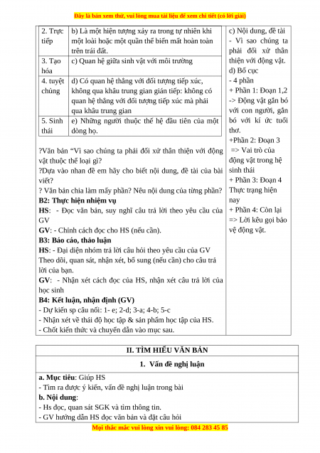- Dự kiến sản phẩm: Con người và thiên nhiên phải sống hòa hợp với nhau