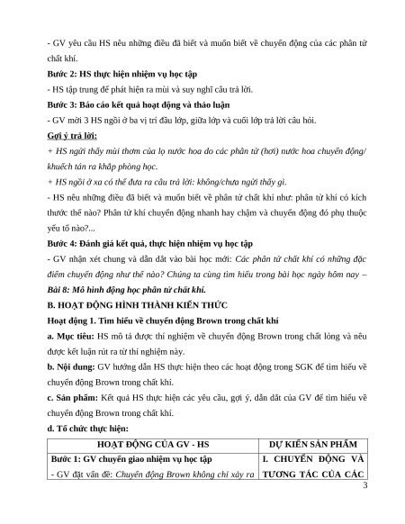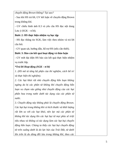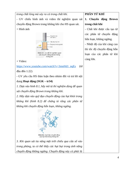 cầu của GV đưa ra; quan sát được thí nghiệm chuyển động Brown của chất khí,