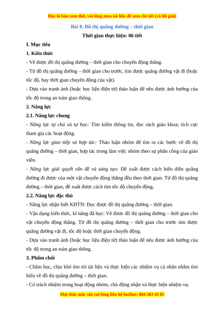 - Năng lực nhận biết KHTN: Đọc được đồ thị quãng đường – thời gian.