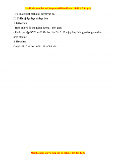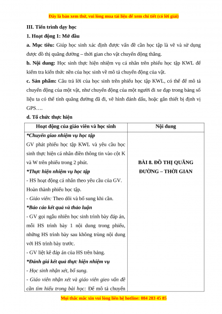 - Phiếu học tập KWL và Phiếu học tập Bài 8: đồ thị quãng đường – thời gian (đính kèm phụ lục). 2. Học sinh