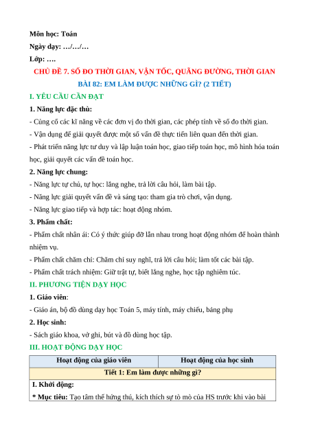 Giáo án Bài 82: Em làm được những gì? Toán lớp 5 Chân trời sáng tạo