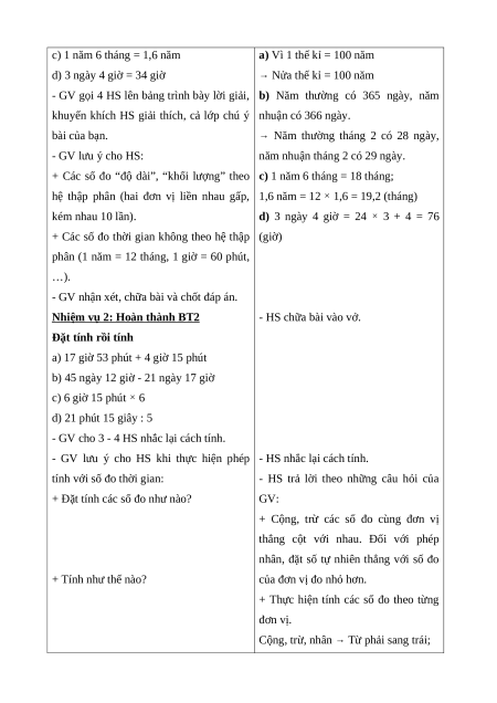 - Vận dụng để giải quyết được một số vấn đề thực tiến liên quan đến thời gian.