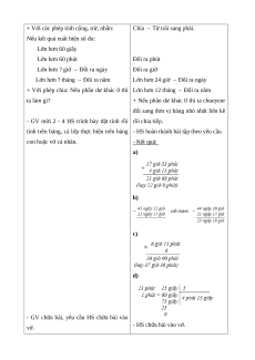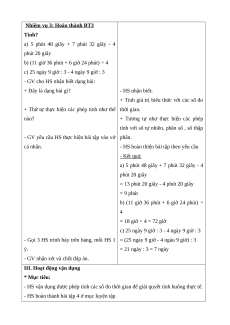 - Củng cố các kĩ năng về các đơn vị đo thời gian, các phép tính về số đo thời gian.