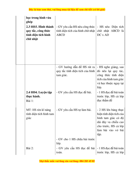 2.3 HĐ3. Hình thành - GV yêu cầu HS nêu công thức - HS nêu: Diện tích