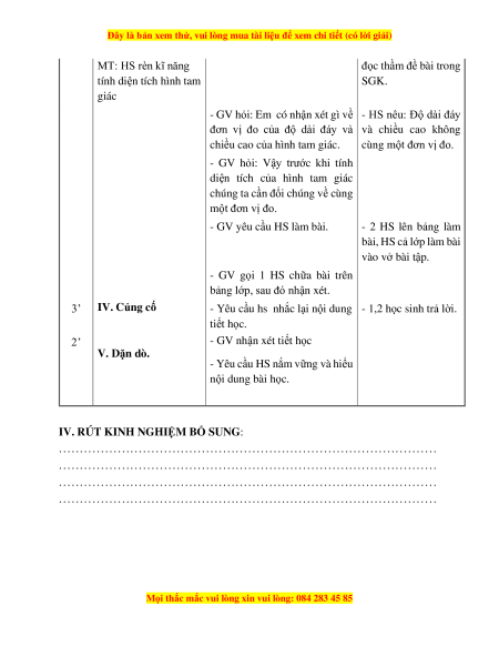 Giáo án Bài 86 Toán lớp 5: Diện tích hình tam giác