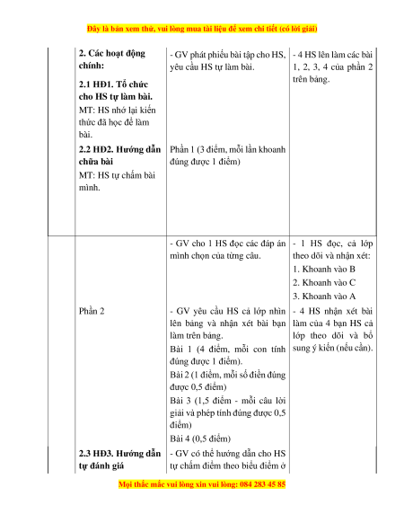 2.2 HĐ2. Hướng dẫn Phần 1 (3 điểm, mỗi lần khoanh chữa bài đúng được 1 điểm) MT: HS tự chấm bài mình.