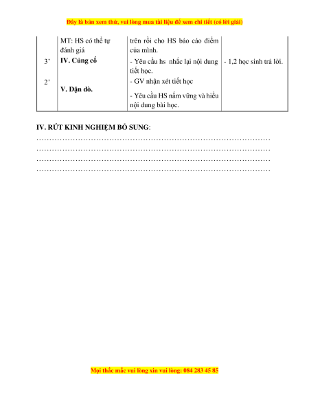 IV. RÚT KINH NGHIỆM BỔ SUNG: