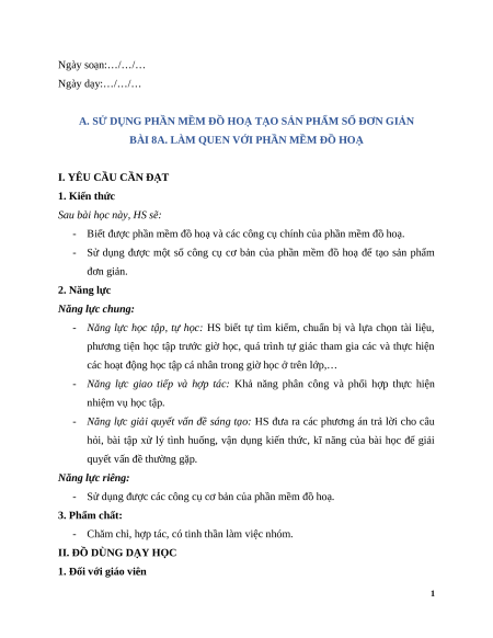 - Sử dụng được một số công cụ cơ bản của phần mềm đồ hoạ để tạo sản phẩm đơn giản. 2. Năng lực