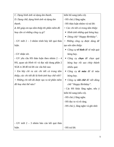 - GV yêu cầu HS đọc nội dung phần 1 SGK tượng, thiết kế thiệp chúc mừng.