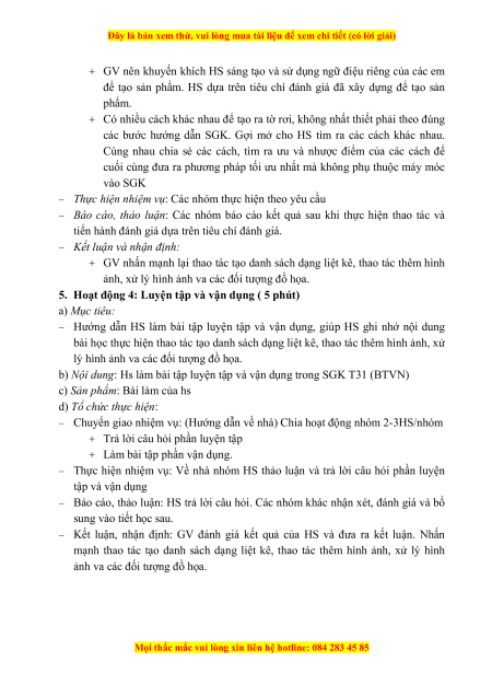 + GV nhấn mạnh lại thao tác tạo danh sách dạng liệt kê, thao tác thêm hình