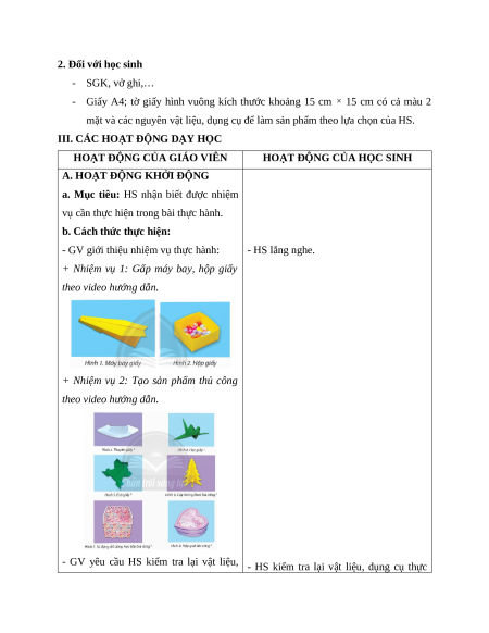 - Giấy A4; tờ giấy hình vuông kích thước khoảng 15 cm × 15 cm có cả màu 2