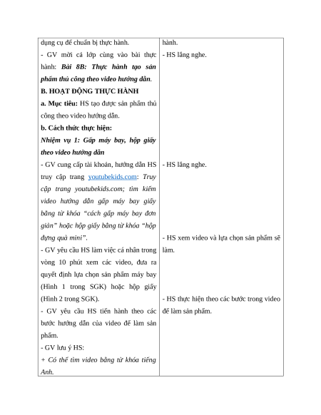 BÀI 8B: THỰC HÀNH TẠO SẢN PHẨM THỦ CÔNG THEO VIDEO HƯỚNG DẪN