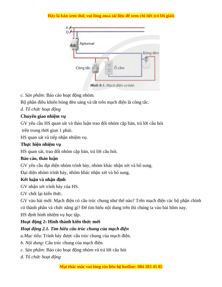 Giáo án Bài 9 Công nghệ 8 Chân trời sáng tạo: Mạch điện