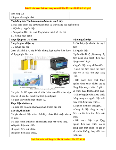 Hoạt động 2.2. Tìm hiểu nguồn điện của mạch điện