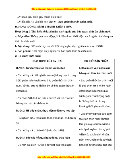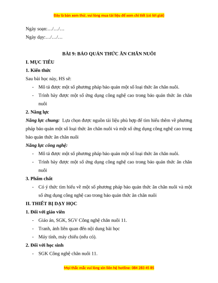 Giáo án Bài 9 Công nghệ chăn nuôi 11 Kết nối tri thức: Bảo quản thức ăn chăn nuôi