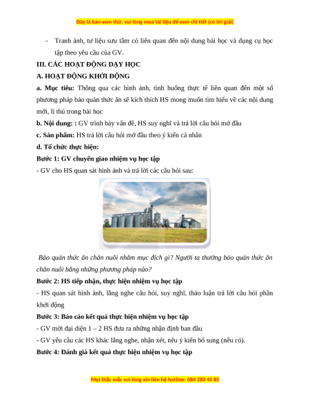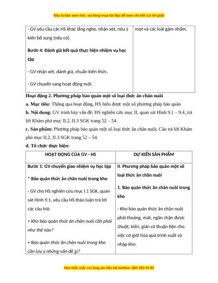 c. Sản phẩm: Phương pháp bảo quản một số loại thức ăn chăn nuôi; Câu trả lời Khám