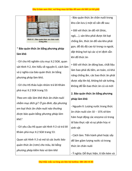 Hoạt động 2. Phương pháp bảo quản một số loại thức ăn chăn nuôi