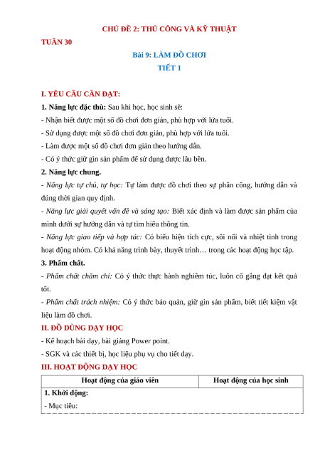 Bài 9: LÀM ĐỒ CHƠI TIẾT 1