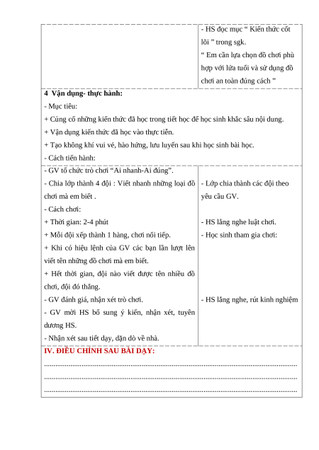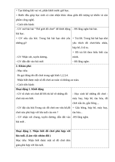 - Mục tiêu: Sử dụng an toàn một số đồ chơi đơn giản, phù hợp với lứa tuổi. - Cách tiến hành: