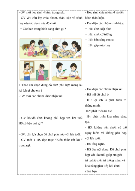 Hoạt động 2. Nhận biết đồ chơi phù hợp với