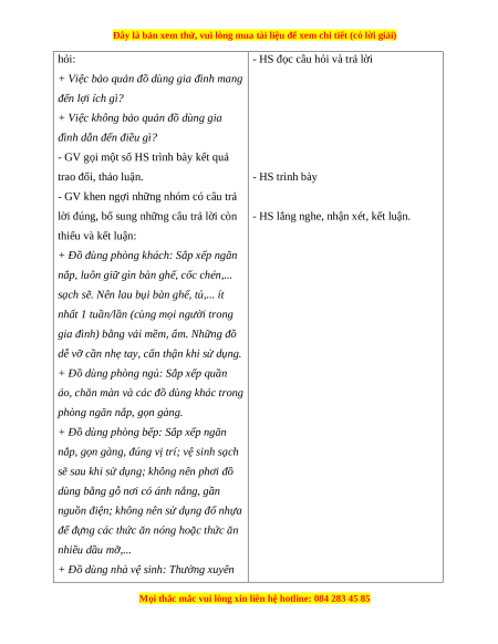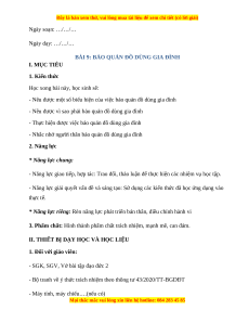 - Nêu được một số biểu hiện của việc bảo quản đồ dùng gia đình
