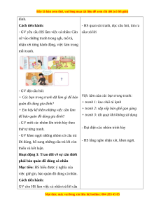nhận xét từng hành động, việc làm trong mỗi tranh. - GV đặt câu hỏi: