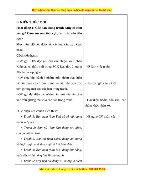 Kiến tạo tri thức mới trong SGK Đạo đức 2, trang - HS làm việc nhóm 38 cho cả lớp nghe.