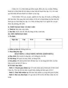 III. TIẾN TRÌNH DẠY HỌC 1. Ổn định: Ngày dạy Lớp Sĩ số Ghi chú