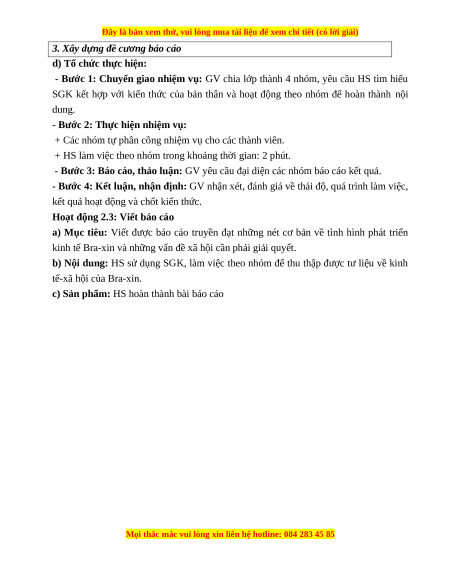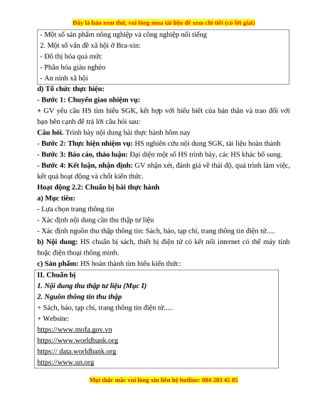 b) Nội dung: HS sử dụng SGK, làm việc theo nhóm để thu thập được tư liệu về kinh tế-xã hội của Bra-xin.