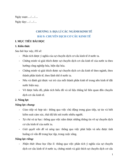 Giáo án Bài 9 Địa lí 12 Cánh diều: Chuyển dịch cơ cấu kinh tế