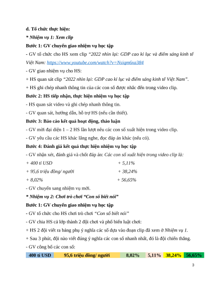 - GV nhận xét, đánh giá và chốt đáp án: Các con số xuất hiện trong video clip là: + 400 tỉ USD + 5,11%