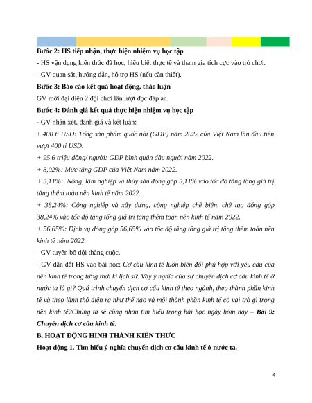 Hoạt động 1. Tìm hiểu ý nghĩa chuyển dịch cơ cấu kinh tế ở nước ta. 4