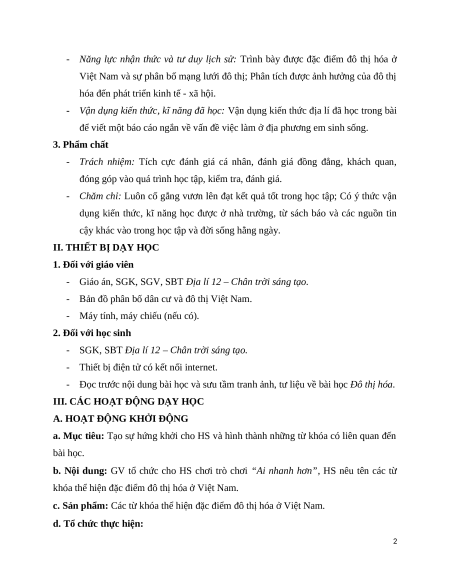 thích về đô thị hóa ở nước ta. 2. Năng lực