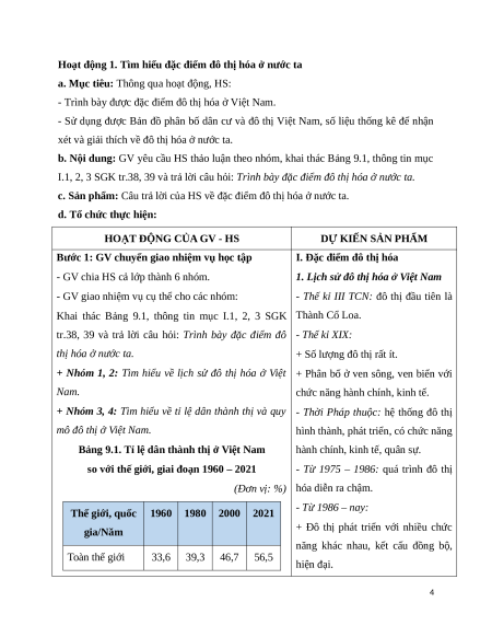 - Năng lực nhận thức và tư duy lịch sử: Trình bày được đặc điểm đô thị hóa ở