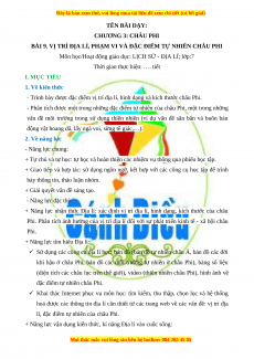 - Trình bày được đặc điểm vị trí địa lí, hình dạrg và kích thước châu Phi.
