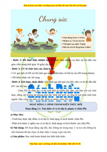 ha – ra, video thiên nhiên châu Phi, …). - Phiếu học tập. - Giấy A0, A1. - Bút dạ, bút màu, …
