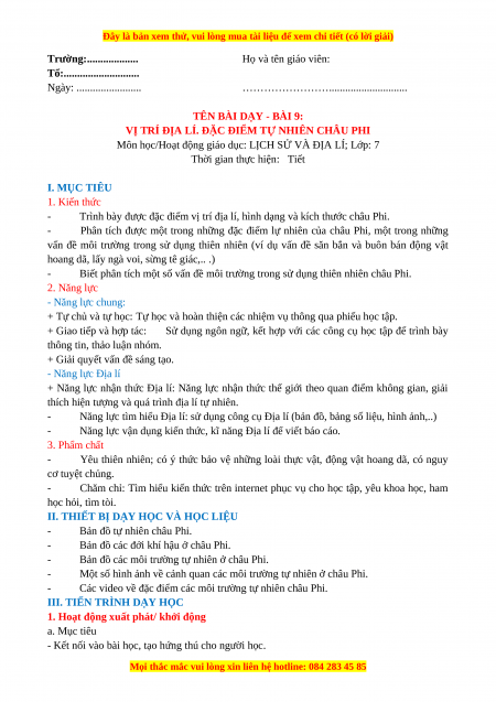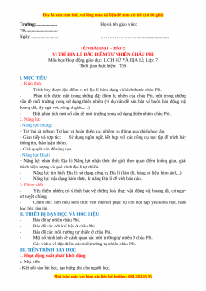 Môn học/Hoạt động giáo dục: LỊCH SỬ VÀ ĐỊA LÍ; Lớp: 7
