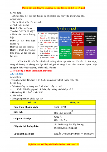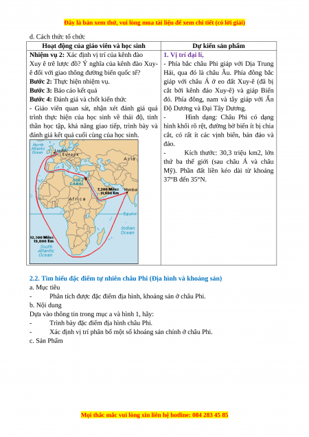 - Trình bày được đặc điểm vị trí địa lí, hình dạng và kích thước châu Phi. b. Nội dung