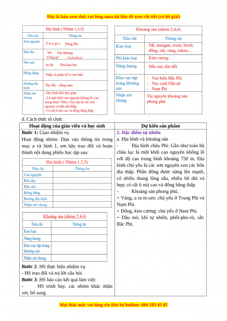 Phân tích được đặc điểm địa hình, khoáng sản ở châu Phi. b. Nội dung