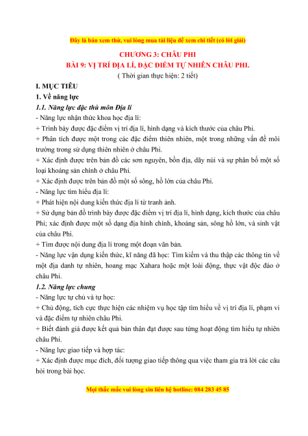Đây là bản xem thử, vui lòng mua tài liệu để xem chi tiết (có lời giải) CHƯƠNG 3: CHÂU PHI