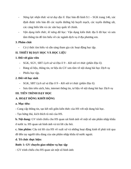 Giáo án Bài 9 Địa lí 9 Kết nối tri thức (2024): Dịch vụ