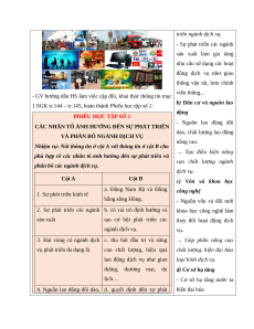 – 165 và hoàn thành Phiếu học tập số 1 và trả lời câu hỏi: Các nhân tố ảnh hưởng